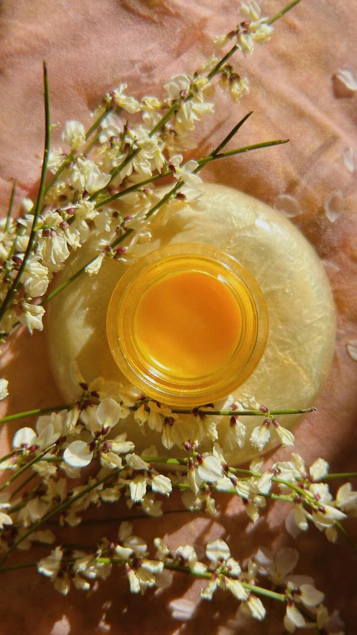 A moisturizing, repairing, and calming blend of oils and infused herbs combine to make a truly decadent experience. Slow infused, Wild crafted Reishi mushroom match with immortelle flower, centella and green tea, for a boost of beautiful fortifying antioxidants. Gentle calendula, lavender and bisabolol from chamomile extracts, soothe inflamed skin. The fruit seed oils and green tea wax lend a light earthy grounding scent as well as even more nutrients for the skin. Absorbs into skin quickly leaving a supple hydrated face.